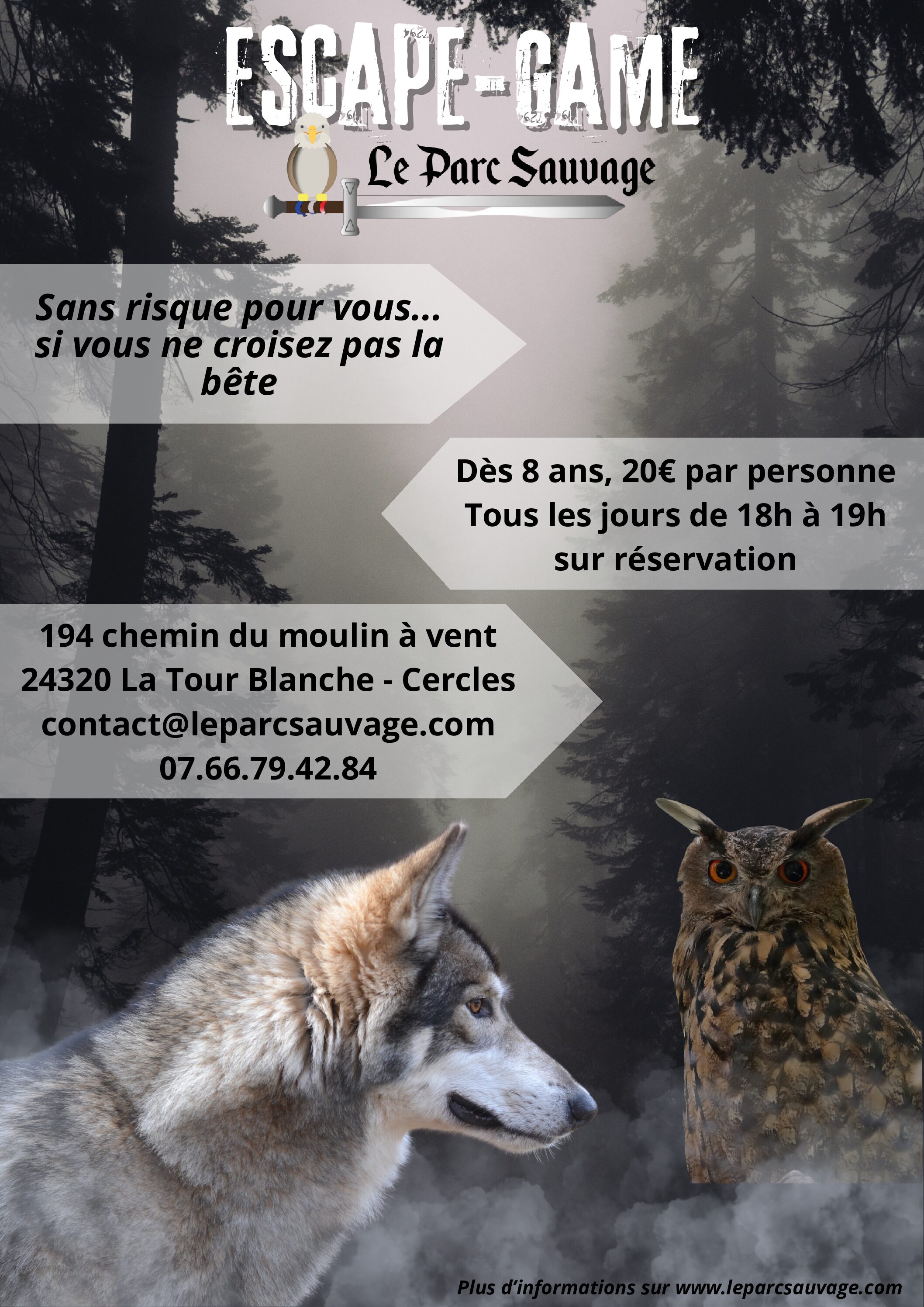 Venez découvrir l’escape game du Parc Sauvage ! Le but : s’échapper du parc... Sinon, gare à vous car la bête rode -- Réservation obligatoire. 10 personnes maximum.